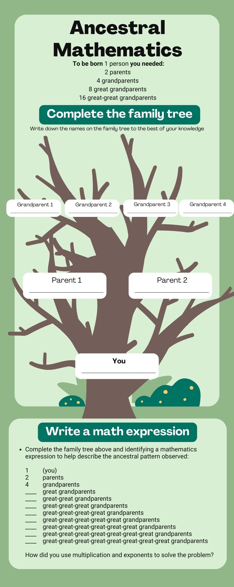 Using the image above as a sample, outline an Ancestral Mathematics class activity and create or modify the worksheet to follow along with your activity.