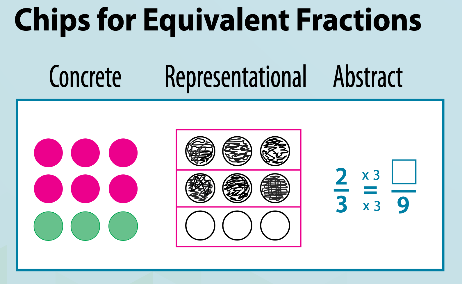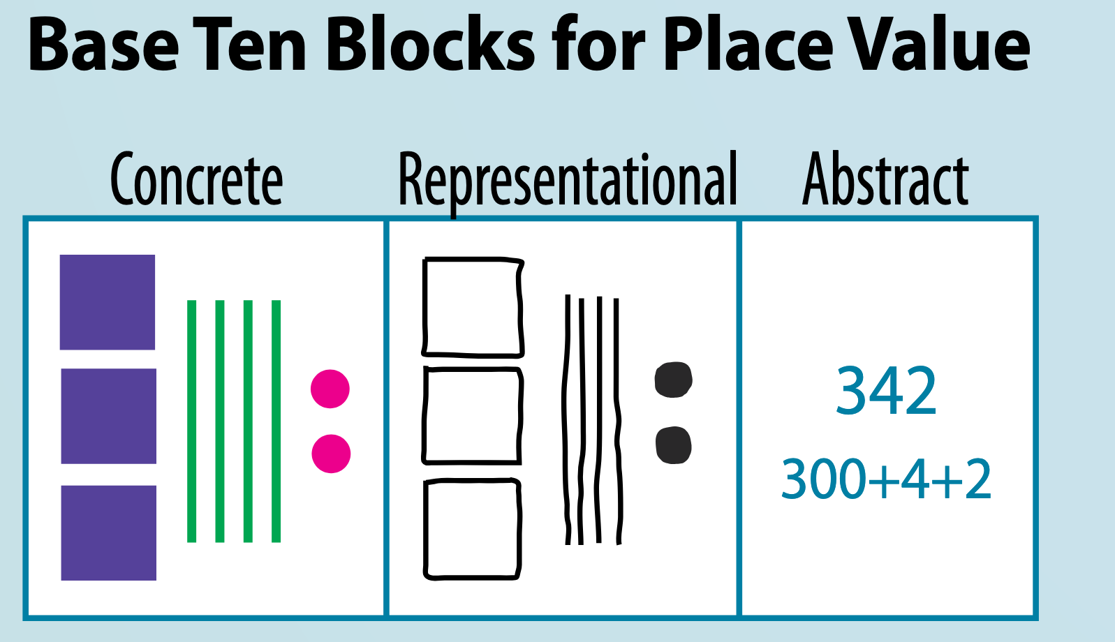 - Students transition to using visual representations of the concrete objects